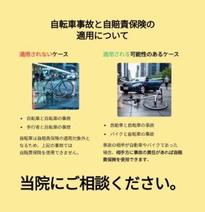当院では、自転車事故によるケガの施術も自賠責保険を使って行えます。