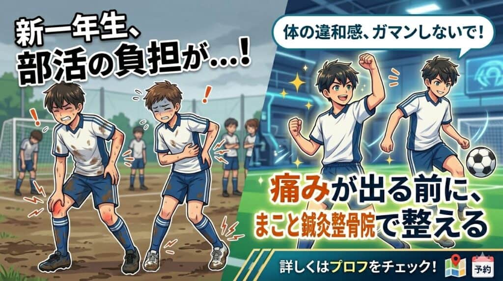 新入生の皆さん、新しい生活には慣れましたか?🌸 部活が始まって、急に足腰が痛くなったり、疲れが抜けにくかったりしませんか? 実は、4月・5月は環境の変化による『オーバーユース(使いすぎ)』での来院が一番多い時期なんです。