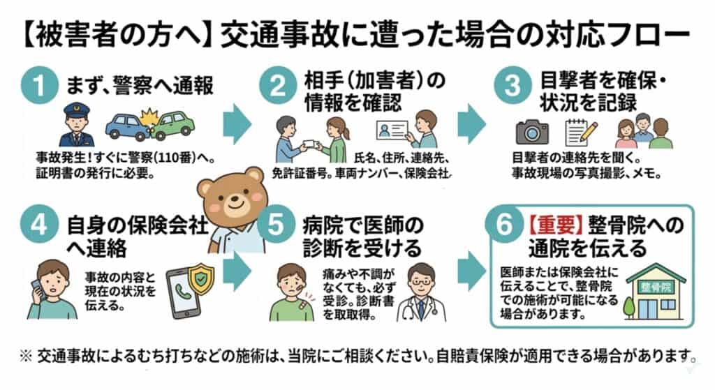 「事故に遭ったけど、まず何をすればいいの?」 そんな方へ、整骨院に通うまでの正しい手順をまとめました! 1. 警察に連絡(事故証明をもらう) 2. 病院で診断書をもらう 3. 保険会社へ「まこと鍼灸整骨院あけぼの院に通い […]